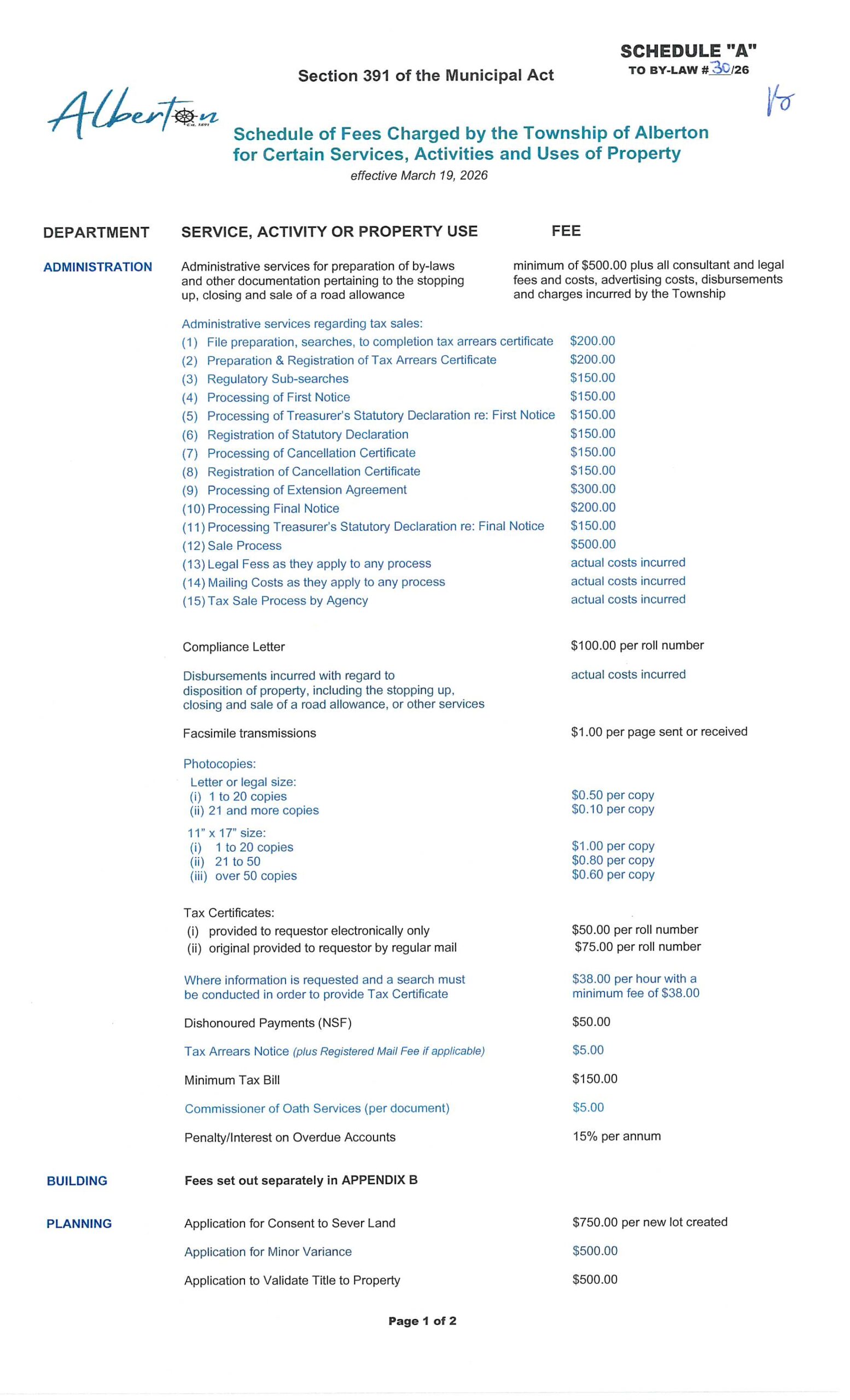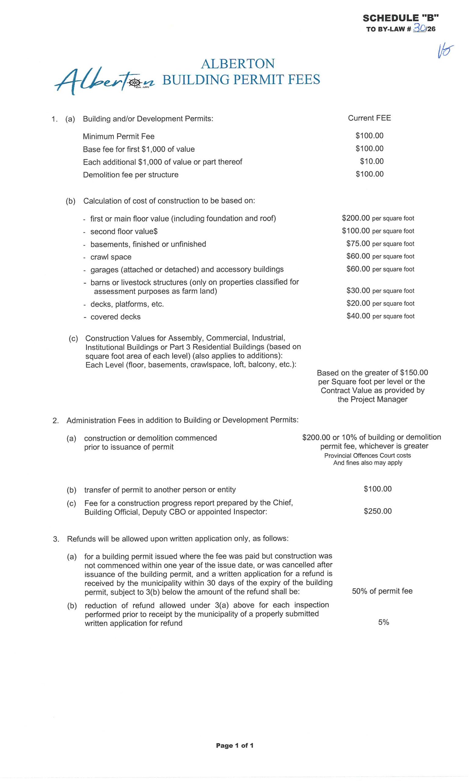 View the User Fees below or